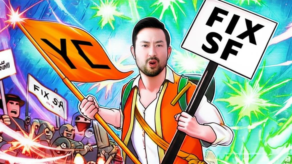 Gestures at blank slides labeled 'THE FUTURE'. Investors love it anyway.